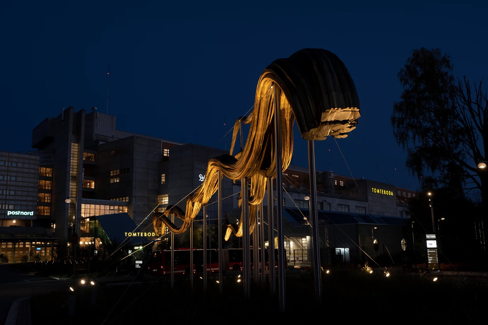 Ett högtflygande konstverk med imponerande dimensioner fyller sin plats utanför Tomteboda.